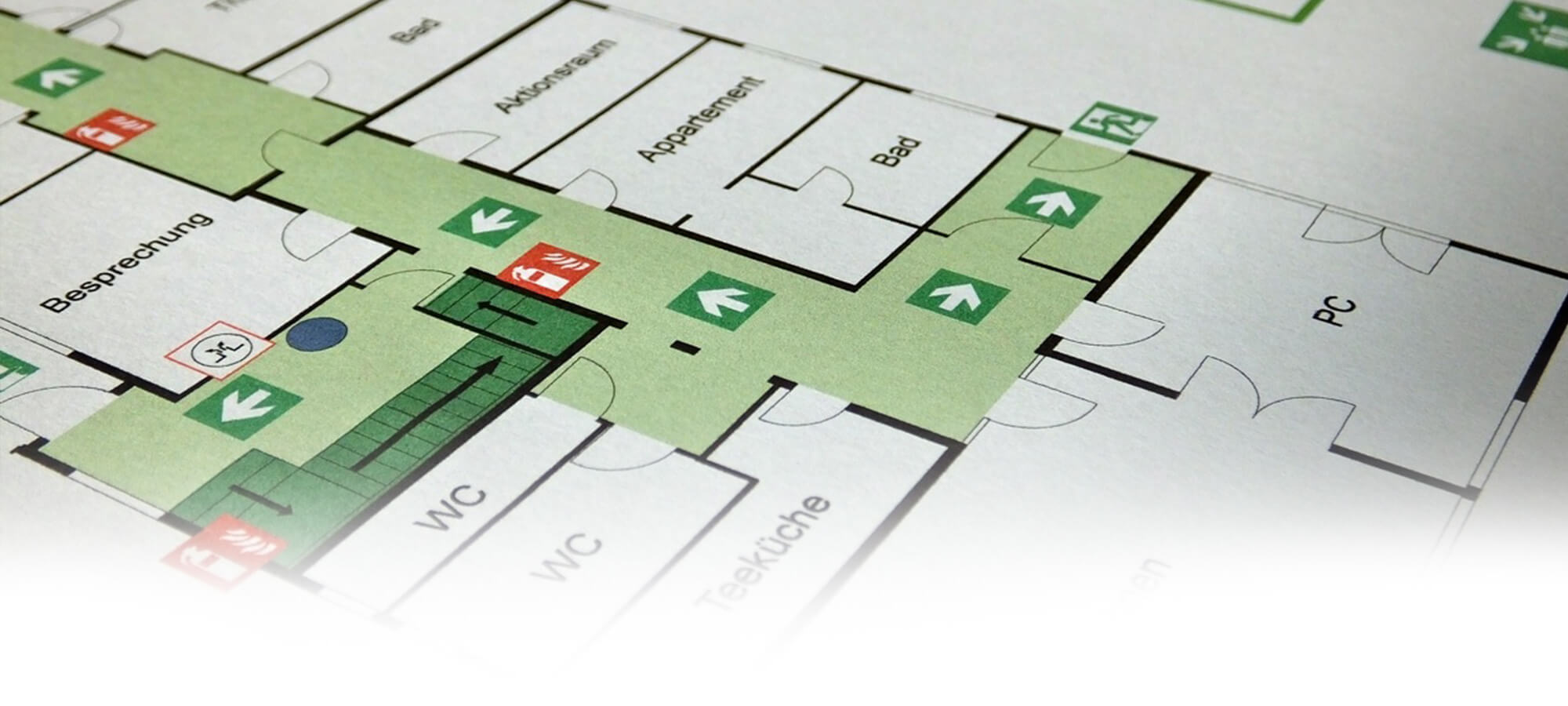 Wir erstellen Ihre Pläne (Feuerwehrpläne, Flucht- und Rettungspläne, Laufkarten) gemäß gesetzlichen Vorgaben und individuellen Anforderungen.